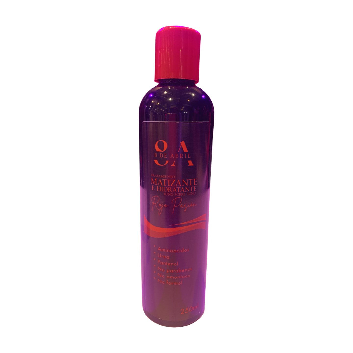 Para cabellos tinturados de color rojo, que se han decolorado, perdiendo el tono y el brillo propios de un color rojo vibrante. Restablece el color, dejando el cabello con vida, con brillo y con un color resplandeciente y único. No contiene sal, ni parabenos, formula libre de amoniaco y de formol. Con aminoácidos, pantenol y urea que otorgan proteínas, hidratación, brillo y suavidad. Cubre perfectamente el color evitando la aplicación continua de tinturas.
